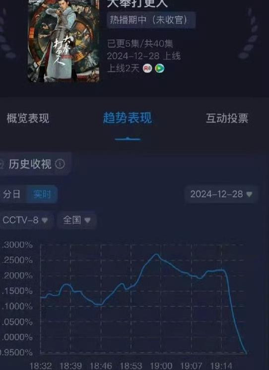 但是开播本日热度值只好26000,直到开播五天后,才拼集达到28000。而在央八的收视爽快接跌破1。手脚央视的开年大剧,这下可确凿创造历史了。,不雅众 “一集弃” 表象严重,多数不雅众在前三集就选拔退出,后续也未能凭借剧情转圜口碑,导致合座数据抓续低迷,难以变成热度爆发。