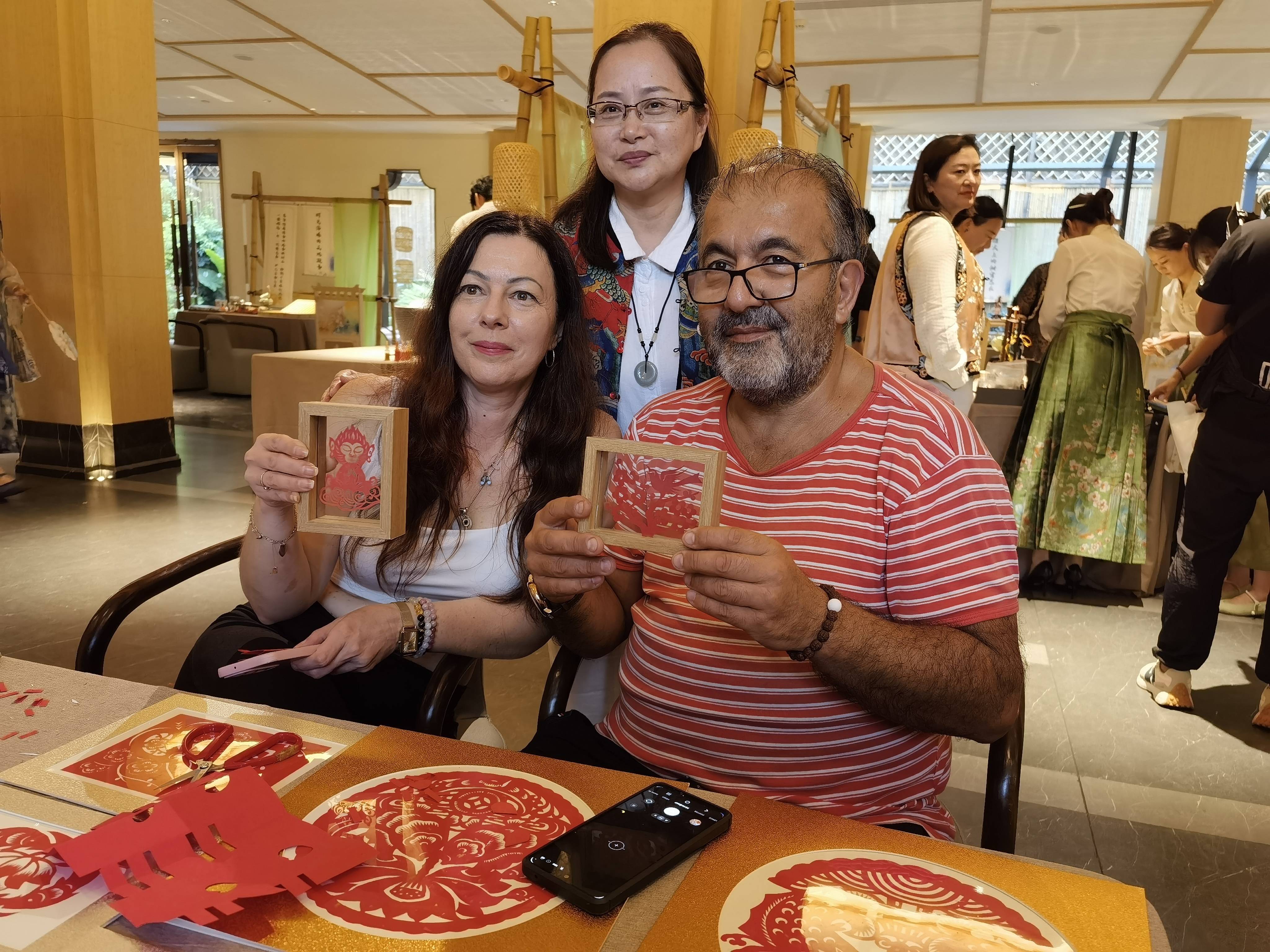 土耳其旅客塞拉莱丁·卡尔塔尔入住旅店时就被这项举止眩惑。他容身上海剪纸摊位,向非遗传承东说念主研究不同图样的真理。