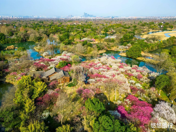 西溪湿地三百亩梅林,走梅竹山庄、泊庵和西溪梅墅一带,梅花争艳。