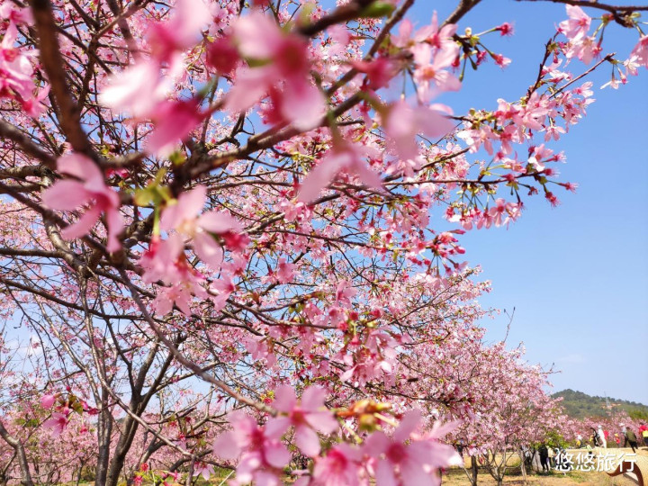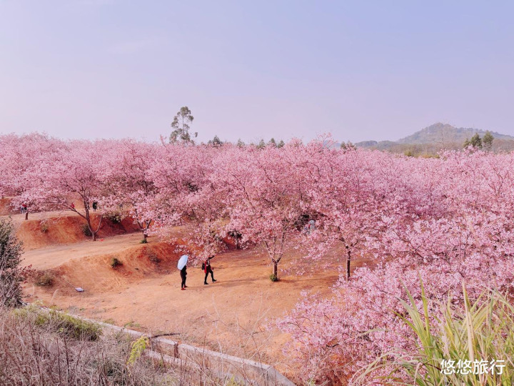新丰县黄磜镇樱花峪,华南最大樱花基地,漫天匝地粉色暴击。1月底-3月初,早樱、晚樱竭力怒放。3万株樱花隐蔽12座山头,黎明潸潸缭绕时像瑶池。