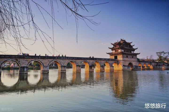还在启动的米轨火车,历程乡会桥、到达团山。铁轨沿线是乡野的慢生计。十七孔桥的日落,在水面反照出古建的好意思。