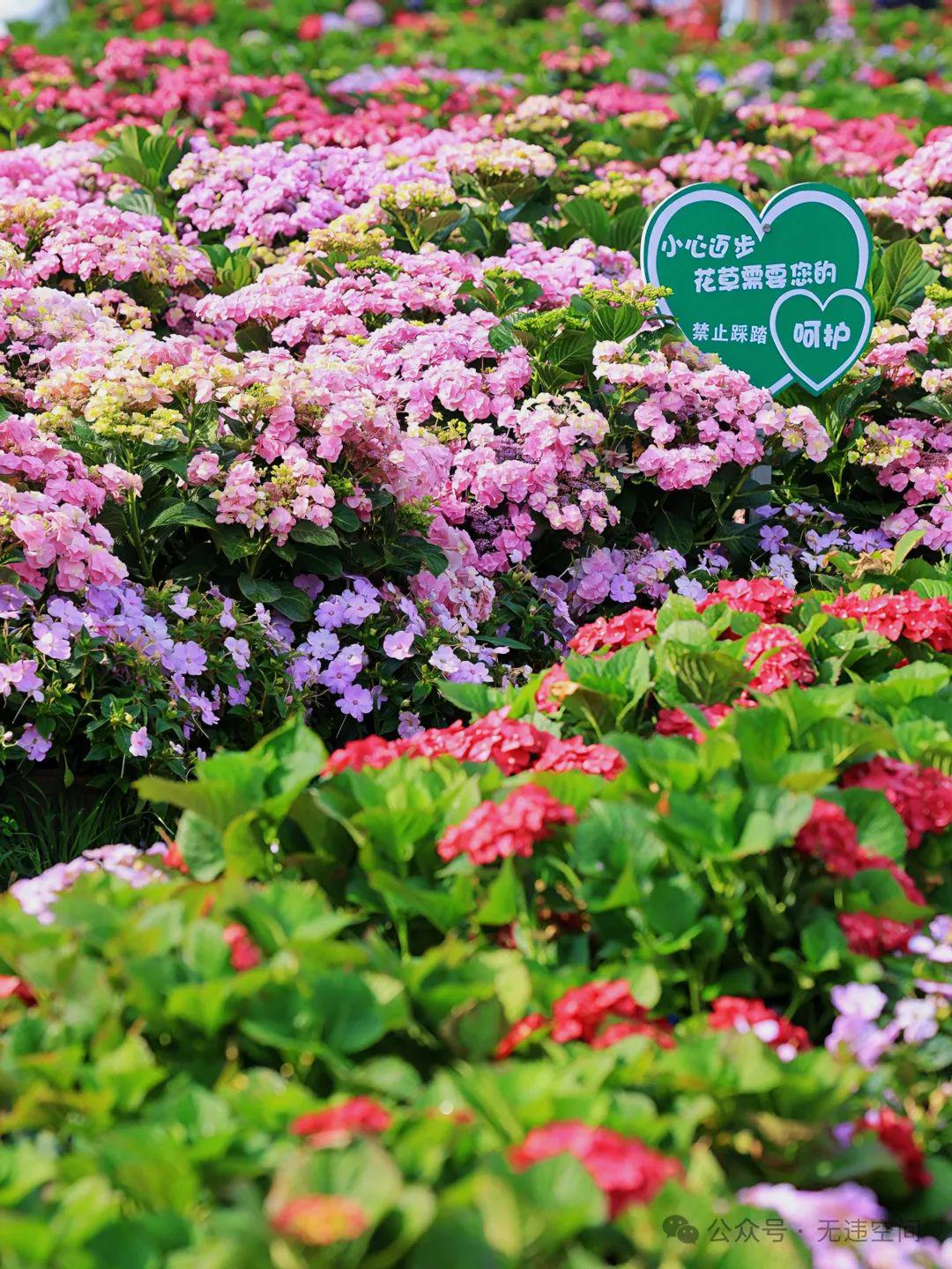 绣球花花展旅客较多,提议早9点入园为宜。进口处顶上有个不雅景台,可以一览扫数绣球花展全景。