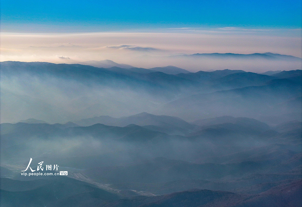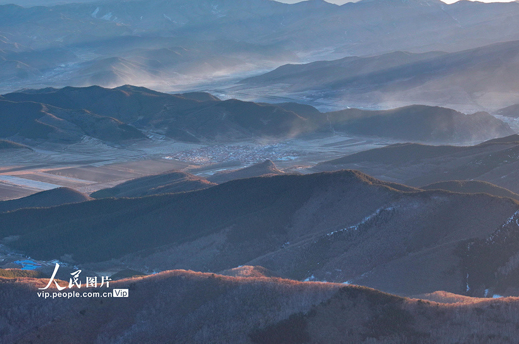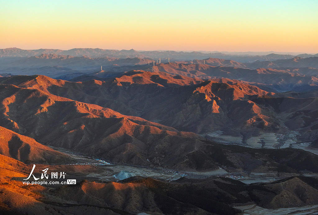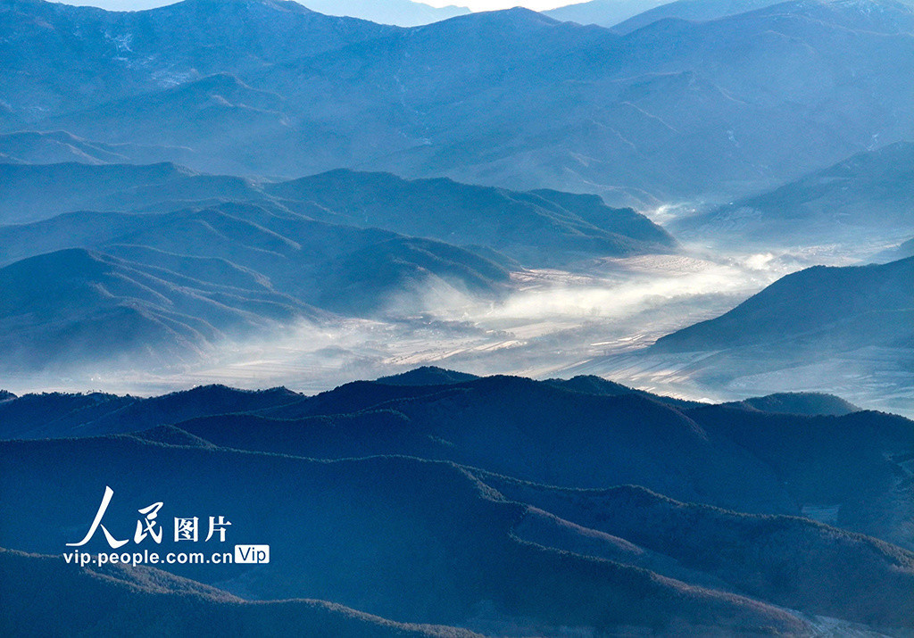 初冬时节,位于内蒙古自治区赤峰市喀喇沁旗的好意思林谷雾霭渺茫,雪谈鬈曲,风机摇曳,山势逶迤,握政阳的照射下开云体育(中国)官方网站,展现出象征的冬日风情画卷。王正摄(东谈主民图片网)
