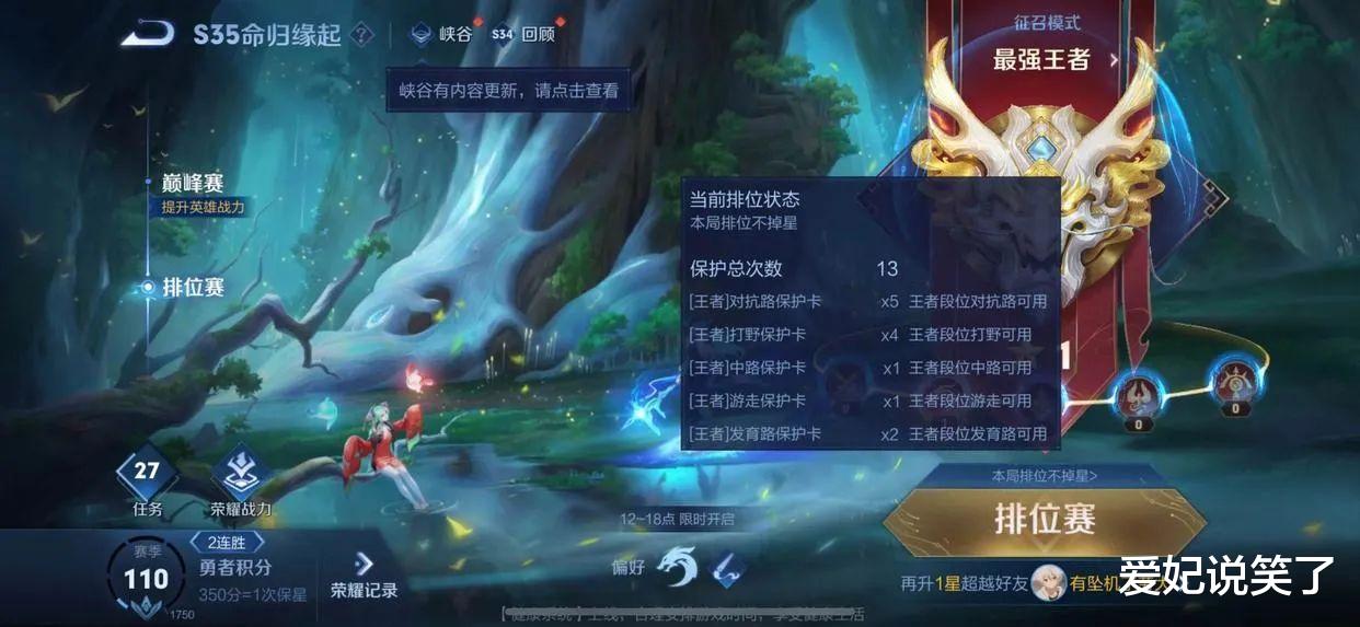 而我之是以说沿途看,是因为伴跟着段位的新增。官方对于各分路的段位纠正,这个赛季咱们领取到了太多太多的保护卡。