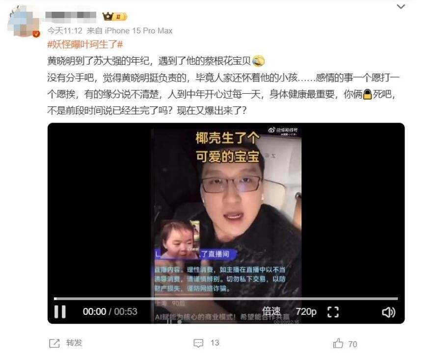 黄晓明发达得荒谬坦荡,不仅公开恋情,还复旧叶珂借助我方的流量带货。
