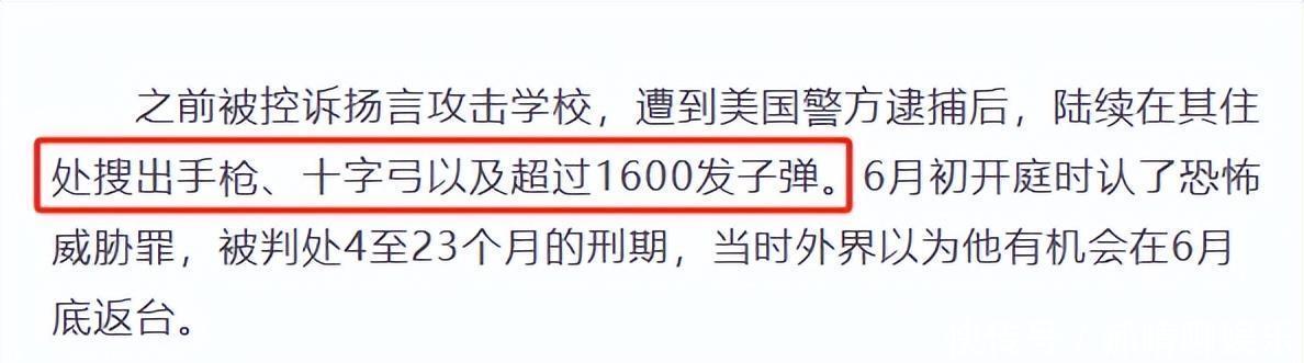 狄莺将他送到好意思国,但愿他承袭更好的教养,却没猜度这成了悲催的着手,2018年孙安佐因一句“要枪击学校”的打妙语被捕,警方随后在他投寄的家庭搜出了枪支和卓越1600发枪弹。