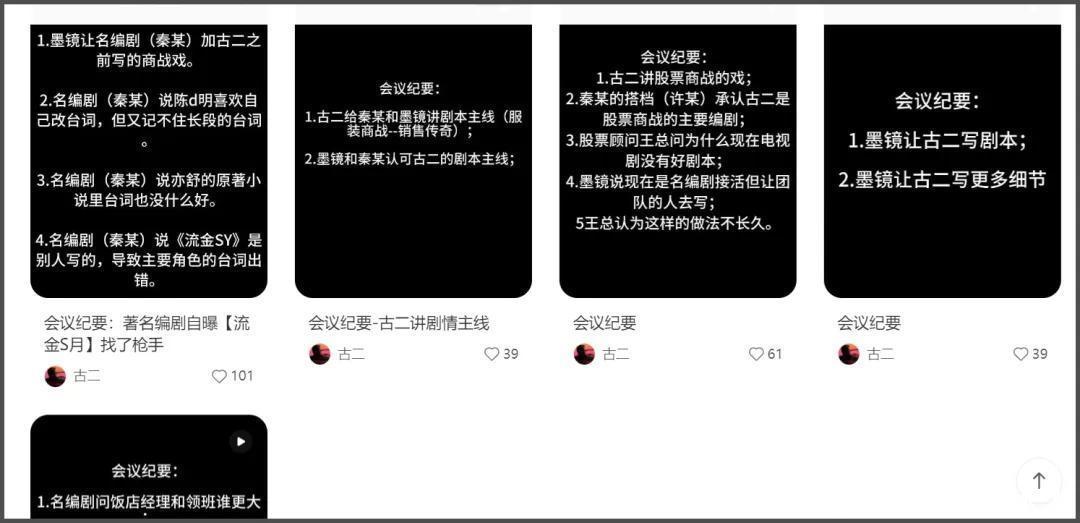 古二晒出多个《会议纪要》来施展我方为《似锦》脚本作念出的孝敬,其中不仅有他和王家卫、秦雯掂量脚本的音频,也有秦雯搭档许某当着股票参谋人的面承认“股票商战”部分主如果古二写的,算是给古二的编剧身份又多了一重施展。