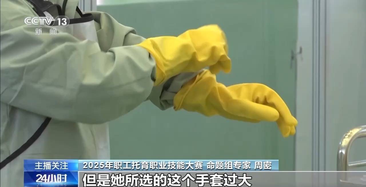 2025年职工托育办事技巧大赛命题组大家 玉成:刚才这位选手的看成基本上都是对的。然而她选的手套过大,是以导致在擦抹经过当中,第一不顺畅,第二手伸入擦抹过的那一面了,这么遵循就不是很理思。