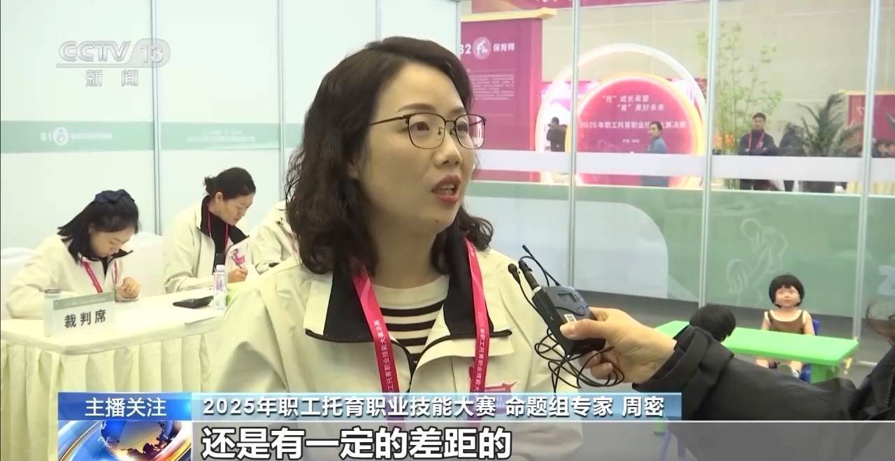 r2025年职工托育办事技巧大赛 命题组大家 玉成:刚才这位选手她总体确认已经曲常可以的。率先,她对宝宝有弥散的耐性,也有时以宝宝为主体,引发宝宝参与。