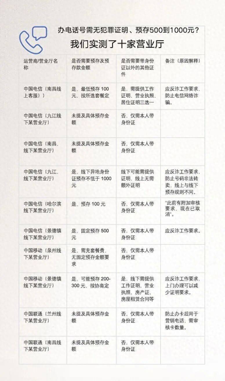 此外,记者了解到,即就是土产货户籍,在江西部分场所电信生意厅办理电话卡,也需要提供责任评释注解、社保评释注解、无违规纪录评释注解、银行活水等其中之一,仅仅预存的电话费莫得那么高。